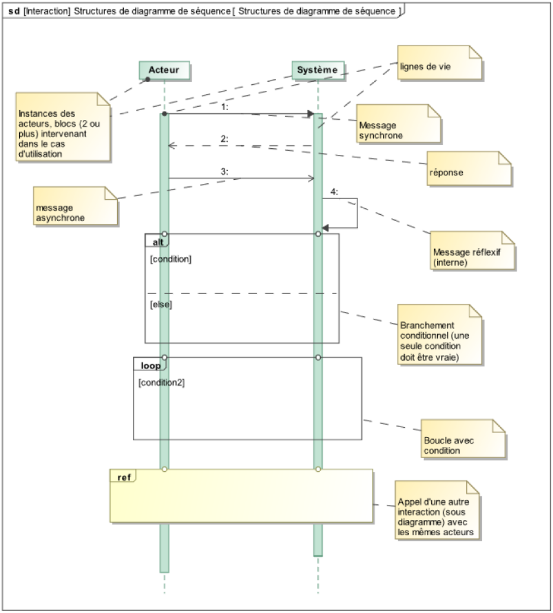 Les "lignes de vie" représentent un élément du diagramme de cas d'utilisation.